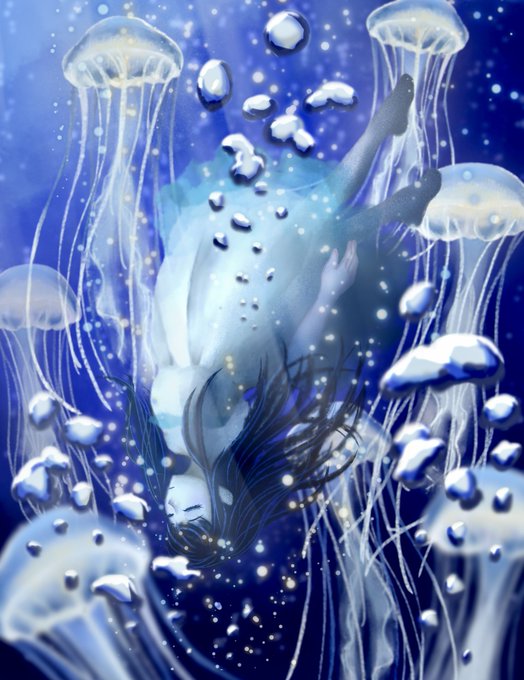 2 25 『海月の揺蕩い』 #illustration #イラスト #絵柄が好みって人にフォローされたい 22/08/07 12:47