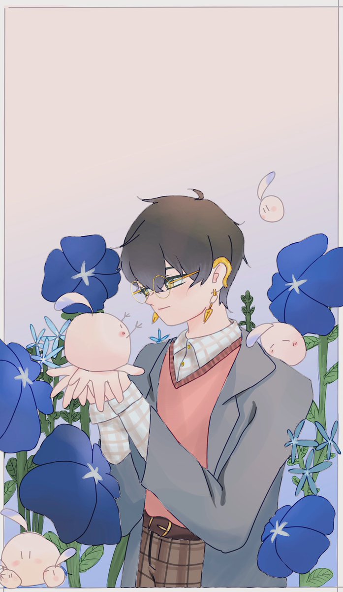 I’m bad at drawing flowers :( These are Blue Daze, I think it is a lovely flower and very match with Ike. Sorry if I use wrong English. #Ikenography #Quilldren