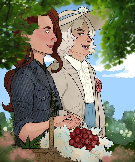A late fill for a December Patreon request for colorful wives. I decided to put them in fun, bright 60s outfits. #GoodOmens #GoodOmensFanArt