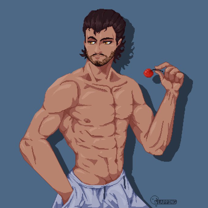 Sorry. I need a cold shower after this Commission piece. (。・//ε//・。) OC: Carlos. #pixelart #asesprite #anime #originalcharacter #ドット絵 #commissions #cherry #muscles #fit #PinUpArt