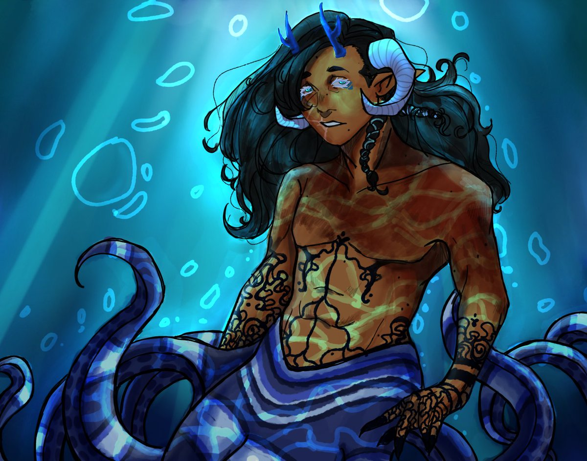 Ur, o Guardião. Primeira vez fazendo iluminação debaixo da água e, minino, né que ficou bom. ❤+🔁 = ARTISTA FELIZ #oc #originalcharacter #mermay #mermay2022 #RPG #art #myart #artist