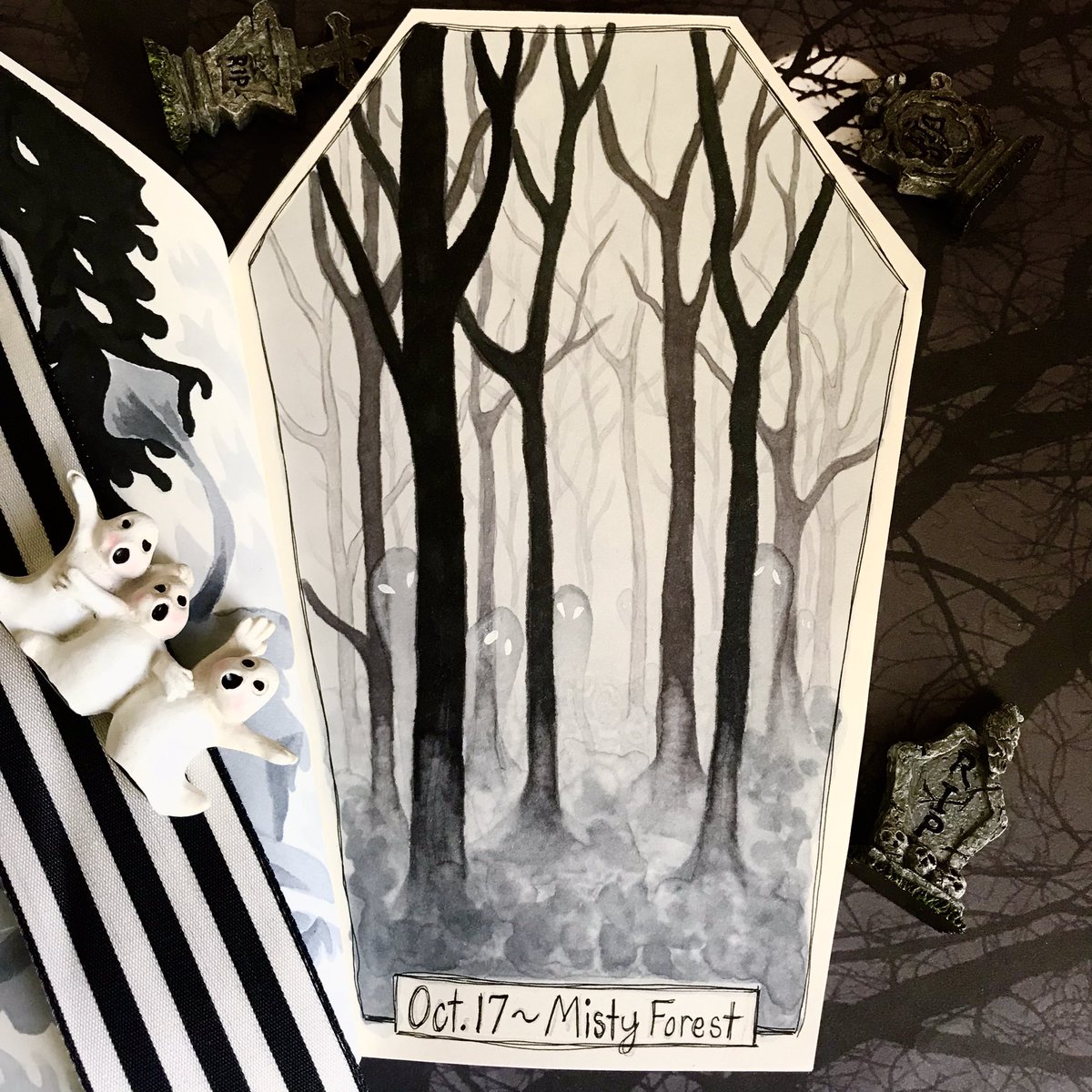October 17 ~ Misty Forest!👻👻👻 I really like the feel of this one, so probably another I will try to turn into an oil painting soon! #Inktober #inktober2021 #illustration #sketchbook #drawing