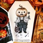 October 9 ~ Vintage Costume!🎃🎃🎃 Inspired by those old black and white photos from back in the day when people had to make their own costumes!🖤🖤🖤#inktober2021 #inktober #Halloween #drawing