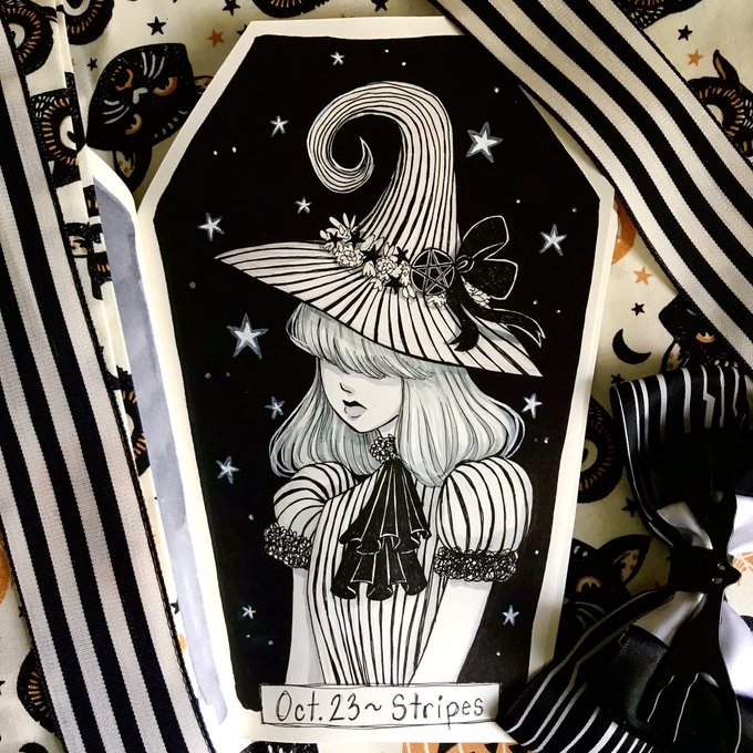 October 23 ~ Stripes!🖤💀🖤💀🖤 Nothing screams Halloween to me more than black and white stripes. Probably because of The Nightmare Before Christmas!💀🖤💀 #Inktober #inktober2021 #witch #Halloweenart #sketchbook #illustration