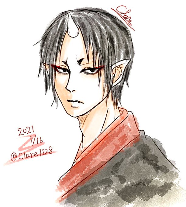 7 34 課題中の息抜きに描いた鬼灯 #鬼灯の冷徹 #落書き #illustration #絵描きさんと繋がりたい #絵柄好みって人にフォローされたい 21/09/16 12:11