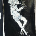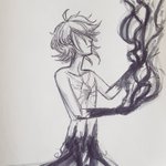 #inktober Day 14 - Overgrown My #Tiefling Myrrha and the sentient sword she has a symbiotic relationship with. #inktoberday14 #Inktober2019 #pathfinder #fantasy