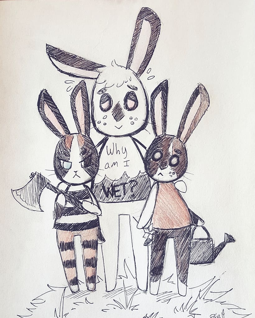 #inktober Day 8 - frail First thing I thought of was my bunnies. They may be smol, but they'll beat you up! #inktober2019 #Inktoberday8 #AnimalCrossing #bunny #rabbit
