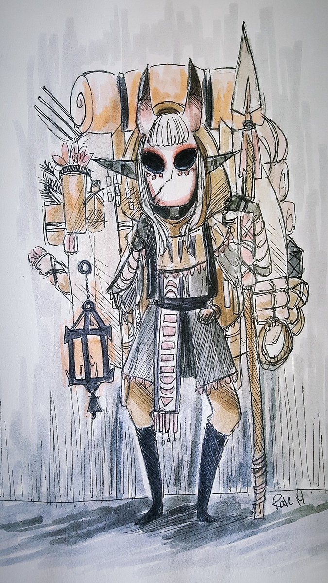 #inktober Day 9 - Mask One of the fictional races from my original setting. Having fun with these brush pens. #Inktober2019 #inktoberday9 #fantasy