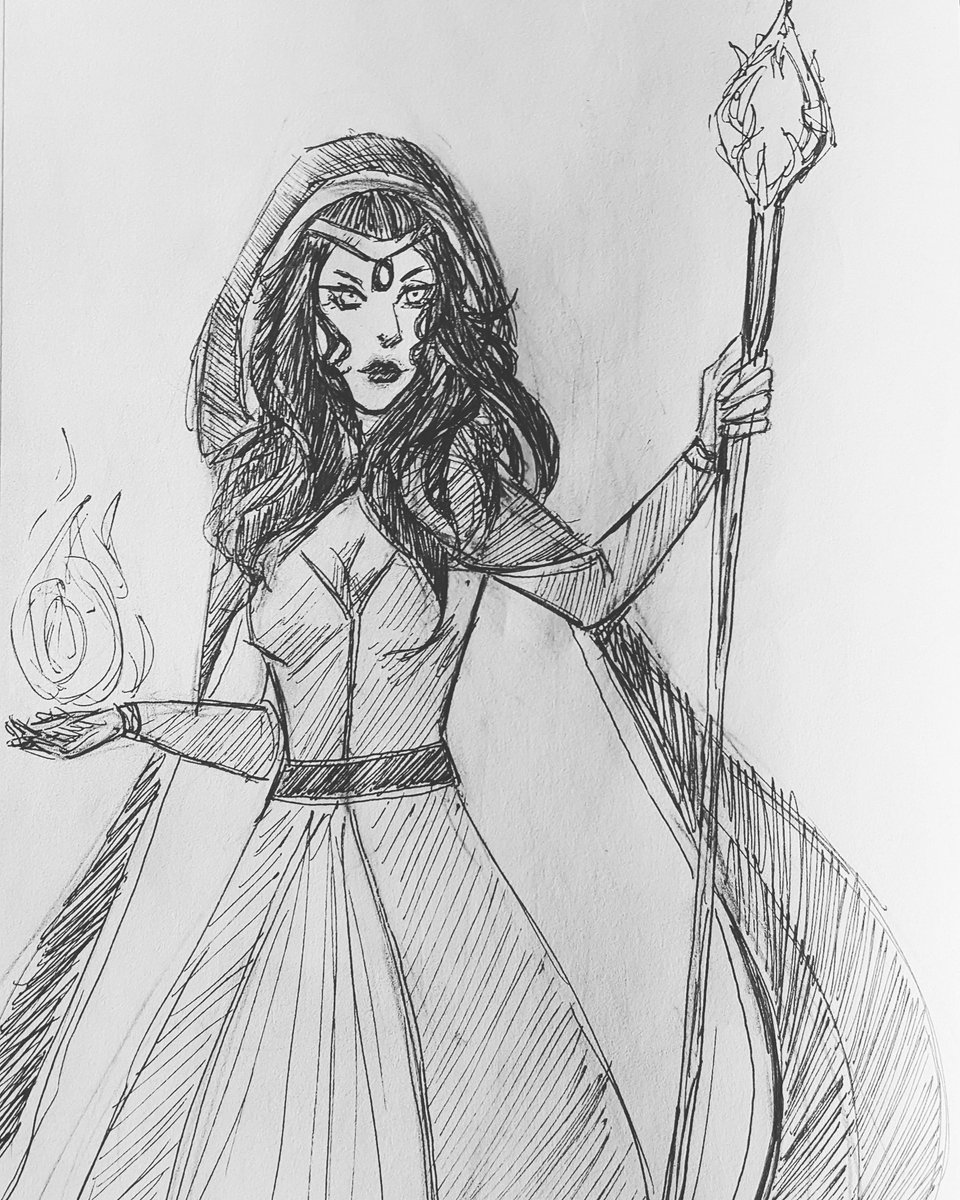 #inktober Day 10 - Pattern I'm halfway through my re-read of WoT, so I had to draw Moiraine. Made some mistakes I couldn't cover up. Live and learn, the wheel weaves, etc. #inktoberday10 #inktober2019 #TwitterOfTime #wheeloftime