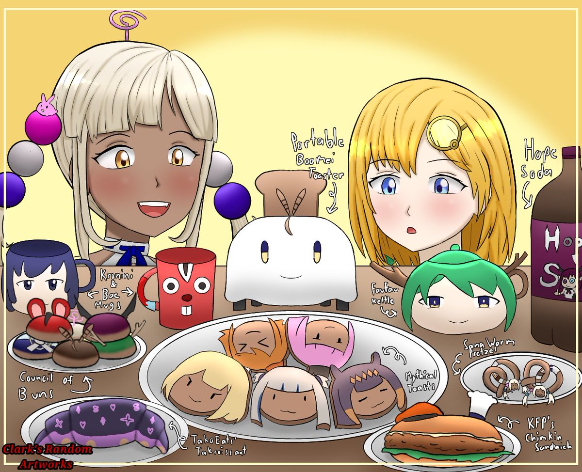 I can't bake so I drew some EN breads instead. Enjoy! (sorry for my terrible handwriting lol) #SanaPanAme #galaxillust #ameliART #FineFaunart #callilust #ArtsOfAshes #Irysart #drawMEI #kronillust #inART #gawrt #illustrayBAE