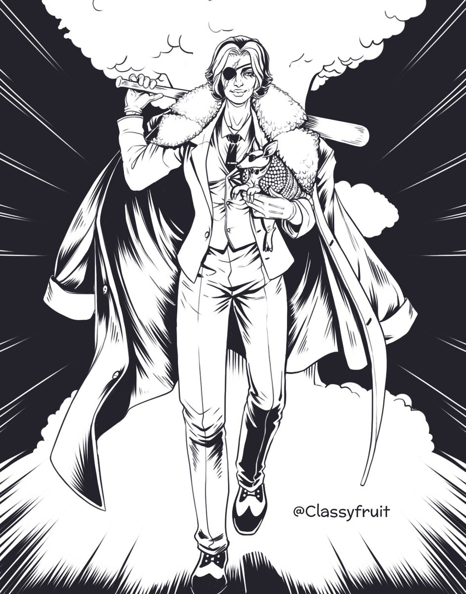[INKTOBER '22 - DAY 15 - Armadillo] "Have you heard of the Armadillo Gang? The ones with their territory down by the waterfront? I heard their boss is the toughest of the bunch. So tough, she only uses a steel bat and her reputation for fights." #inktober #inktober2022