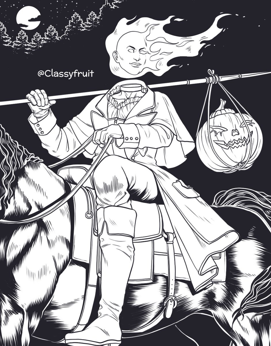 [INKTOBER '22 - DAY 19 - Ponytail] "The night seemed to darken, then: drumming of hooves on the forest floor. Did people from the Night's Watch come to rescue you? However, the light did not come from torches... and the rider was certainly not human." #inktober #inktober2022