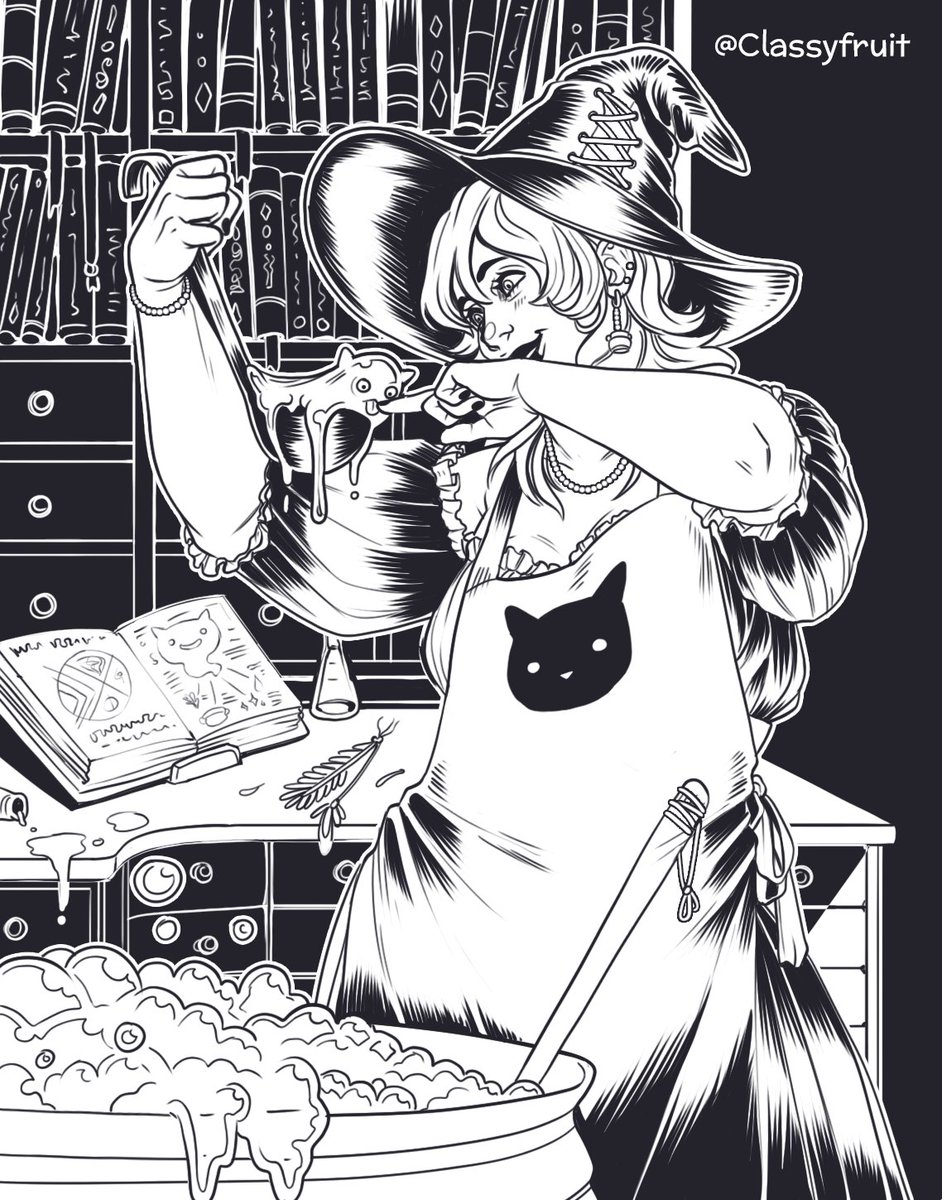 [INKTOBER '22 - DAY 20 - Bluff] Magic is a fickle field. Manipulating currents in the web of possibilities is the most complicated. Spells have a high failure rate. Therefore, as a magician, it is best to be good at bluffing. Pick a card, darling~ 😏♠️ #inktober #inktober2022