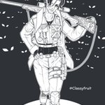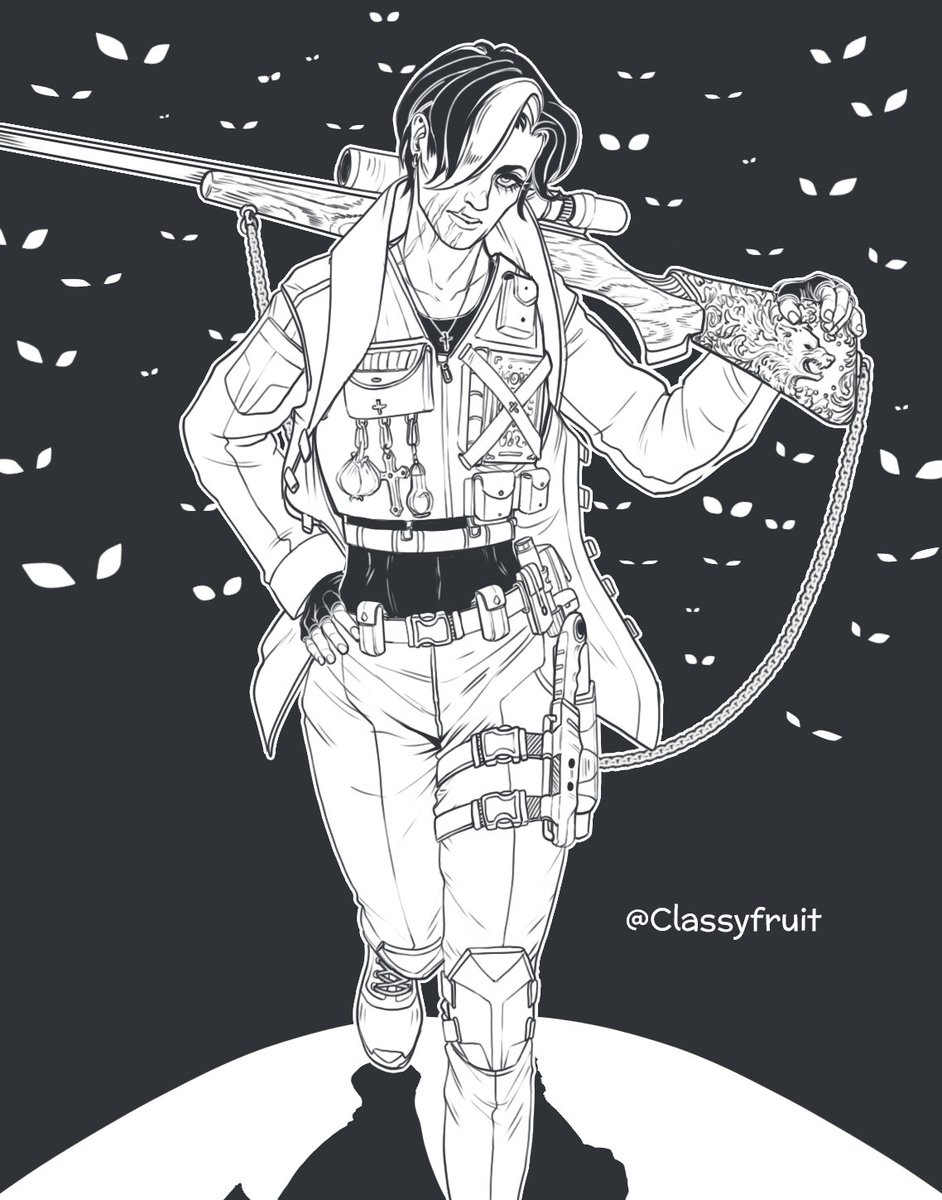 [INKTOBER '22 - DAY 30 - Gear] "After several years of hunting evil creatures, nothing could frighten the huntress any more. Part of her confidence was, of course, her top-maintained equipment." The lady from day 29 of Inktober as seasoned monster hunter #inktober #inktober2022