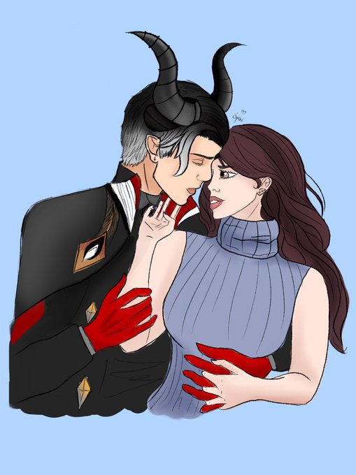 Drawing @CuriousMaiden MC with her main man Luci 🥺🤍 pls they’re so cute…ima ship name them Juci 😔✌️💕 #obeymefanart #Obeymelucifer #obeymemc #obeyme #lucifer #obmプラス #obeyme #ルシファー