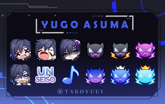 Had the amazing honor to work on @Yugo_Asuma 's official badges and emotes 🙏! I hope you enjoy them💙🎧✨ #AsumArt