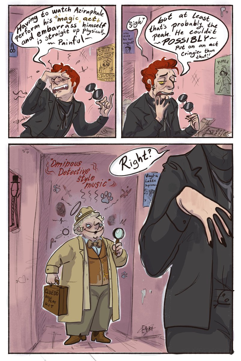 Magician Aziraphale has given me the most secondhand embarrassment a character ever has. However, the more we hear about S2 and its “mystery”, and I remember last year’s bts photos, the more I have this feeling that whatever he’s gonna do as “detective” will top it. #GoodOmensS2
