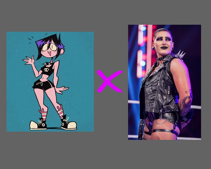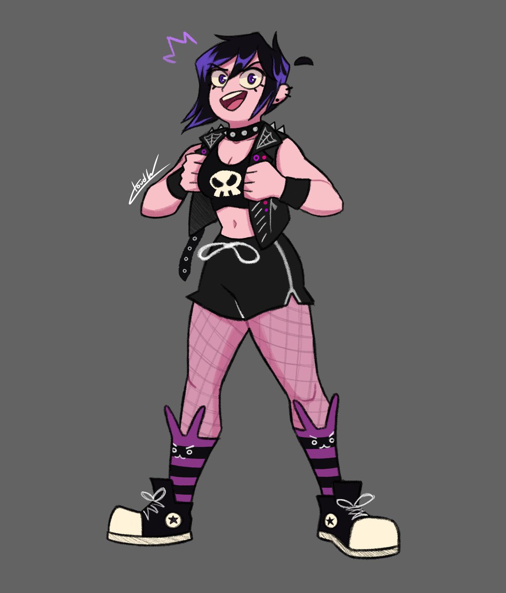 I redesigned her as a wrestler inspired/combined with Rhea Ripley 💜🖤💜🖤 #fanart twitter.com/Valbun_/status…