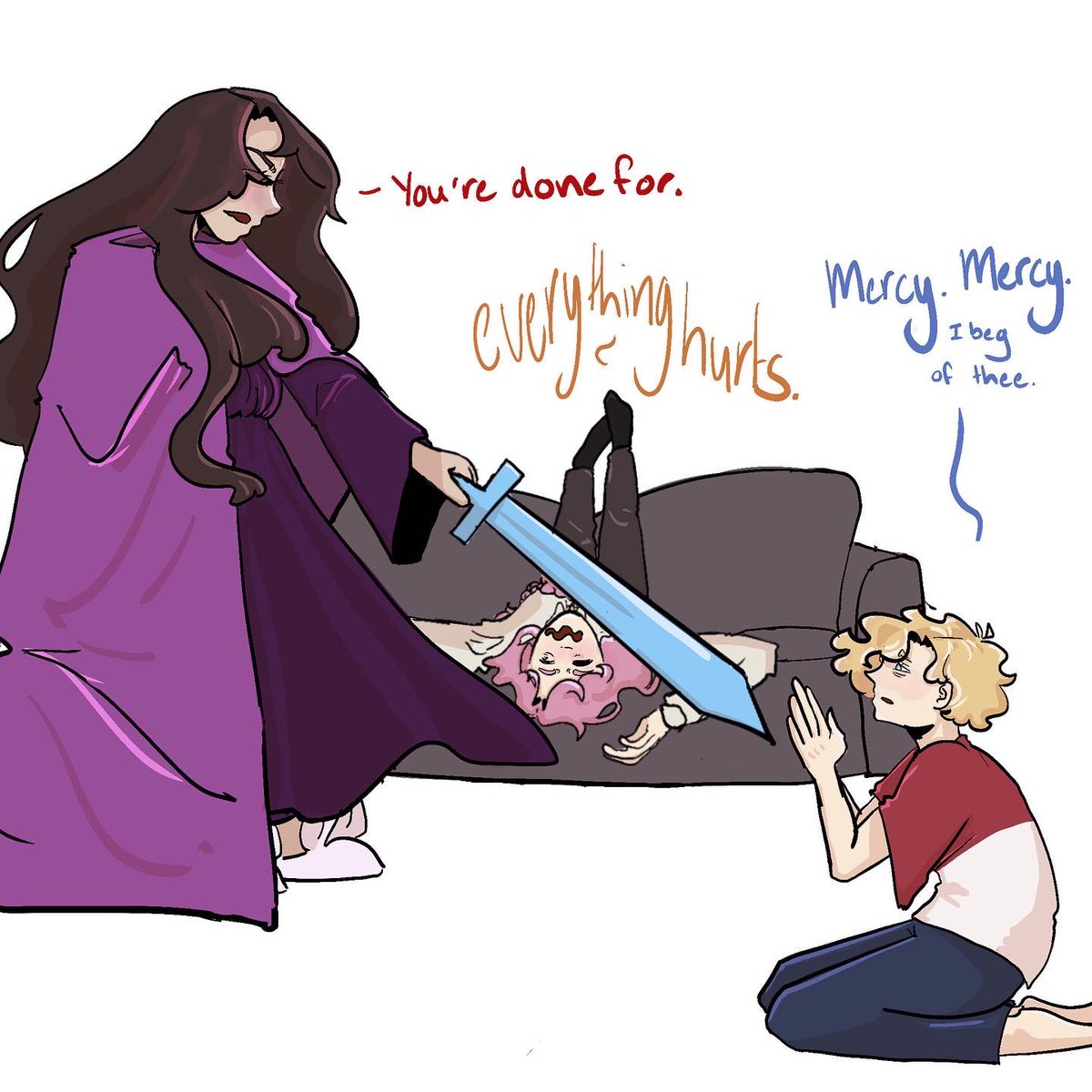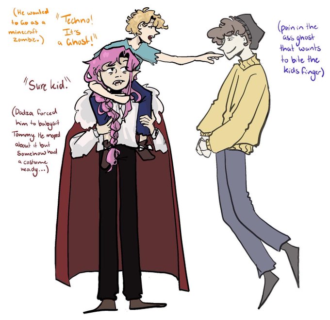 SBI Bingo Prompt 2: Vampires/Ghosts/Werewolves/Zombies. Overexcited child + edgy teenager + annoying ghost = very tired dad @SBIBingo #tommyinnitfanart #philzafanart #technofanart #wilbursootfanart #sleepyboisinc