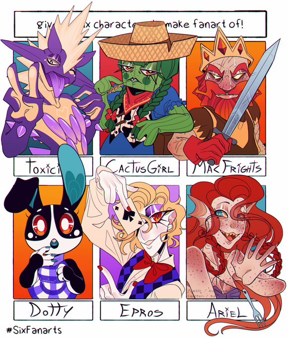 #SixFanartsChallenge finally done! It was long but had fun drawing different characters than who I usual do- Thank you to anyone that suggested! #SixFanarts