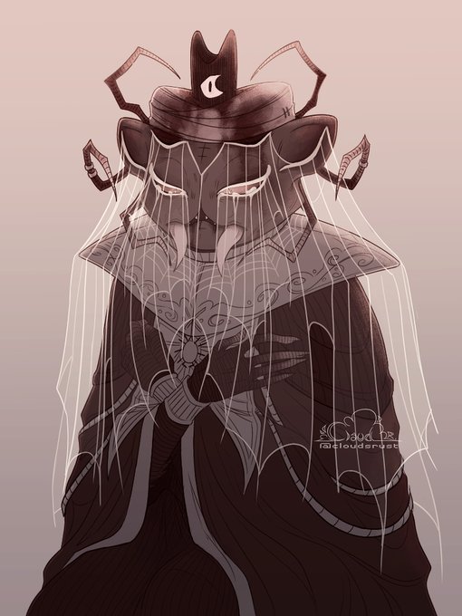 (CW:multiple eyes) - Extra doodle with Shamura grieving. Their "web-eyelashes" are made out of their sticky tears, so the more are shed the longer they get. - #CultoftheLamb #cultofthelambfanart