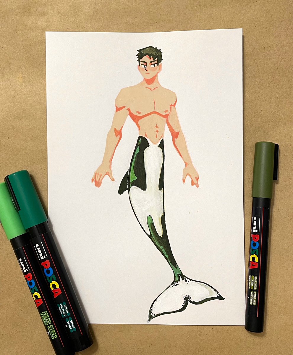 Day 13 / Mermay Sugawara Koushi 🎏 This one is a little silly and mostly just me messing around 😅 but I had a lot of fun making it! #mermay2021 #sugawarakoushi #haikyuu