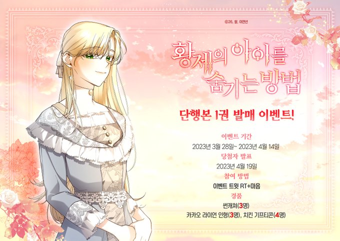 <황제의 아이를 숨기는 방법> 🎉단행본 1권 발매 이벤트🎉 본 트윗을 RT+마음해 주신 분들 중 추첨을 통해 다양한 선물을 보내 드립니다! 세 사람의 이야기를 이제는 만화책으로 소장 할 수 있는 기회! 많은 관심 부탁드립니다.🥰 ▼1화부터 정주행 각이라면? page.kakao.com/home?seriesId=…