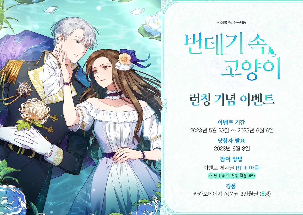 간절한 염원으로 첫사랑이 죽기 전으로 회귀한 키트. 그녀는 에드윈을 구원할 수 있을 것인가? 🥳아름다운 로맨스판타지 <번데기 속 고양이> 런칭! RT + 마음을 해주신 분 중 추첨을 통해 5분께 기프티콘을 드립니다. 💚💙 카카페: url.kr/l49ck7 카카웹: url.kr/ay8q6p