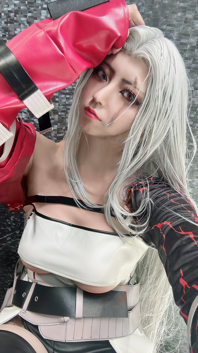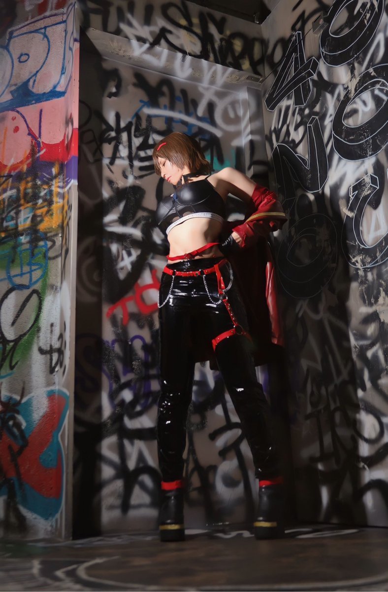 #いにしえコスモスナップ 【作品名】 ギルティギア 【キャラクター】 イノ 【ポイント】 格闘ゲームなので全身入れての構図などをカメラさんがこだわってくださいました。衣装もテカリ感とか欲しくてレザーを選んでます。