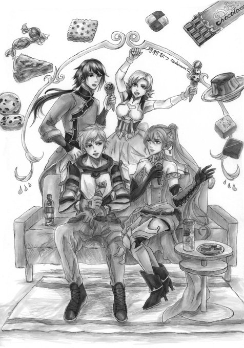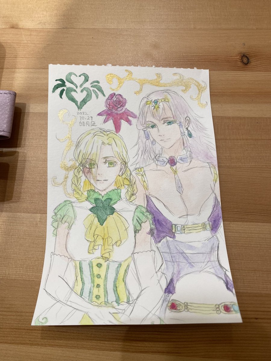 私はカフェで、いーのんさんにイーサンさんと御堂さんのシュガーちゃん(写真は撮り忘れたのでいーのんさんのツイートをどうぞ)、 ぐそくさんにヴェルデットちゃんとオーロラを描いてみました twitter.com/co_getsu7gi/st… @RWBYOC