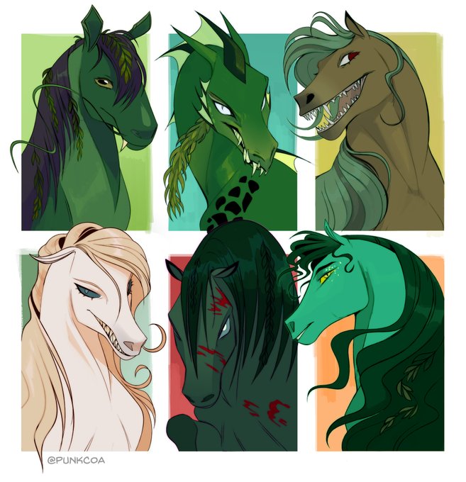 6 fanarts template but with some friend's ocs :) (@/jack_the_nave, @/silven.art, @Dalgeor, @onvisera and @/mint_dolphin27) ☺️ #drawingoftheday #art #6fanarts #horse #digitalart