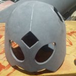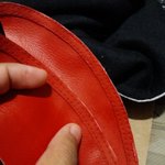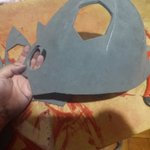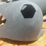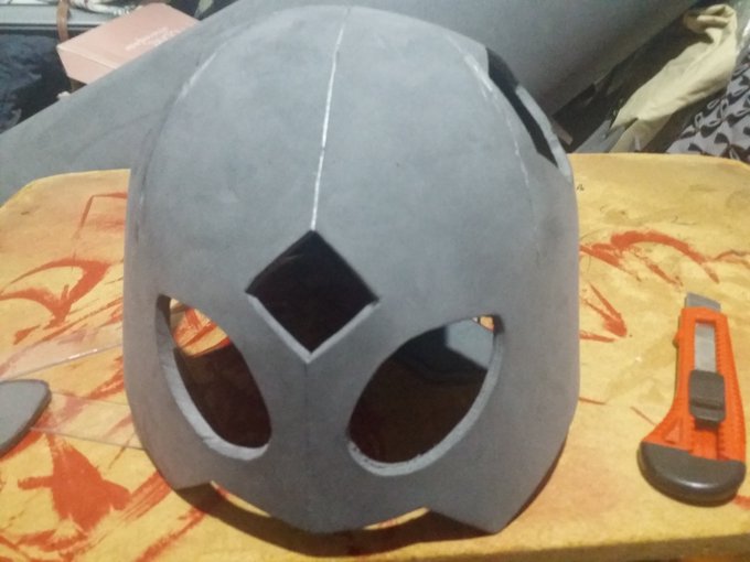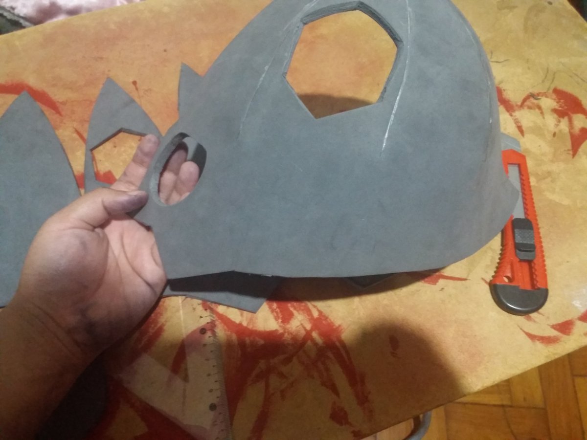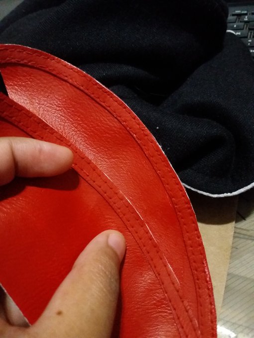 Even with the right presser foot, needle, and thread, sewing curves on synthetic leather with a domestic machine is a nightmare. So, I'm happy that the paint covered all the holes from having to undo the seams and sew again. #cosplay #cosplayinprogress