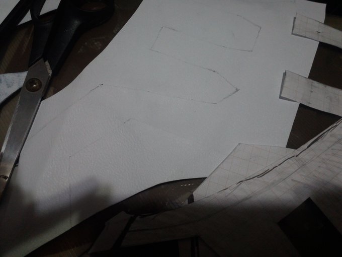 making this pattern has been hell, but at least i finally figured out how to lay down the pieces to finally cut everything. this is for a half boot cover since the rest of the shoe looks exactly like the cosplayer needs it to look #cosplay #cosplayinprogress