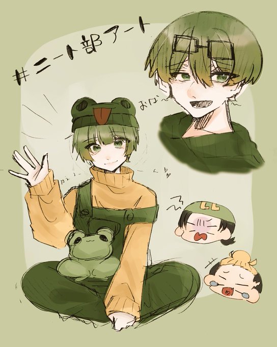 かえるくんとおぱ〜 #ニート部アート #50人イラフト