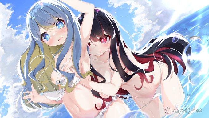 ご依頼にて描かせていただきました! 冬だけど水着!!!青空!!!絆創膏!!! #SKIMA