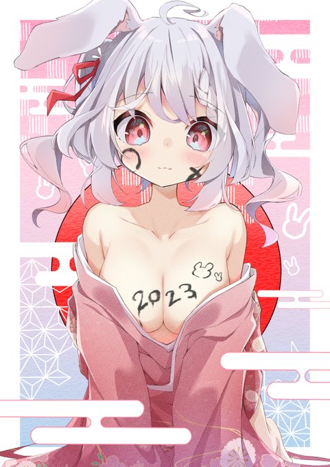 18 91 描き初めウサギ🎍🐰 今年もよろしくお願いいたします!!! 23/01/03 17:00