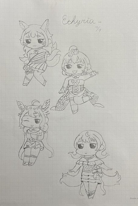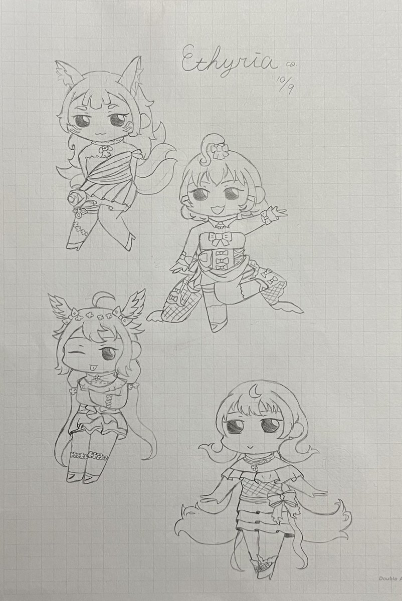 I finally finished it!! Happy anniversary Ethyria! 🕊🎐🪄🎰👻🎵 #Palouette #DrawMillie #DrawKosaka #Reimural #EnnaAlouette #MillieParfait #NinaKosaka #ReimuEndou