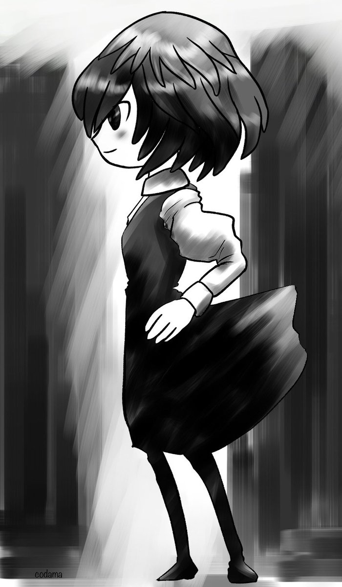 横から白黒モップちゃん🧹 #イラスト #一次創作