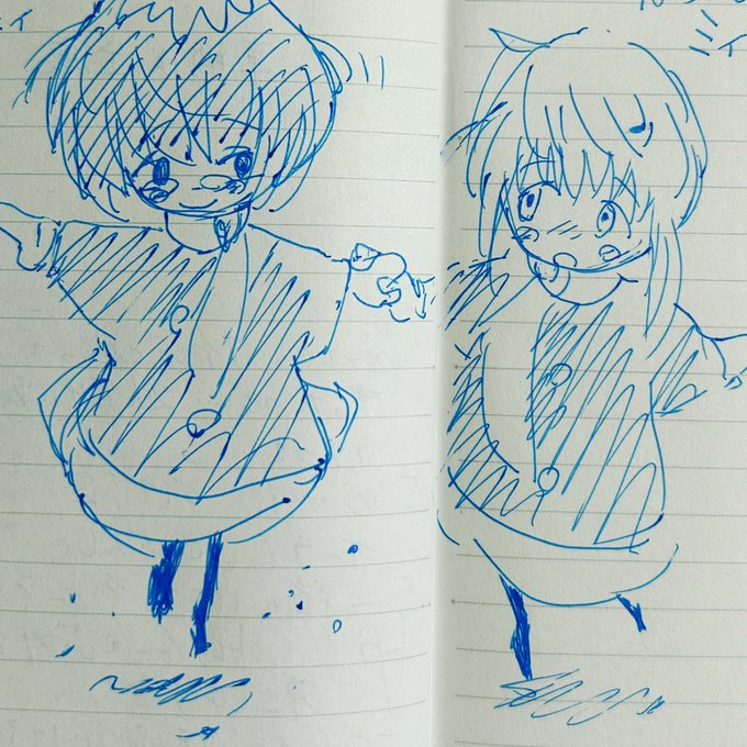 モップ【お話作り中】 普通のB5ノートに青いペンでイメージを描いてます✒️ #落書き #ラフ