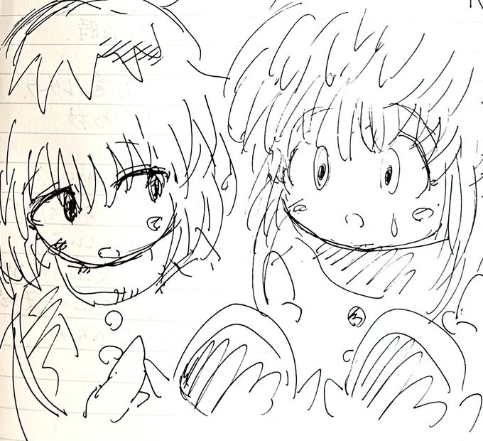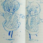 3 31 モップ【お話作り中】 普通のB5ノートに青いペンでイメージを描いてます✒️ #落書き #ラフ 23/05/06 22:51