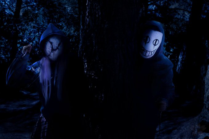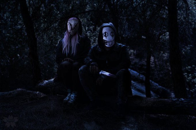 "Grinning masks daring you to run." - The Legion 🌸Cosplayers: 🌸Frank: @_Jotiwis_ 🌸Susie:@CodeAriaCosplay 🌸Photographer: @/fuckyny on Instagram 🌸Character from @DeadByBHVR @Behaviour @DbDMobile #DeadbyDaylight #Cosplay #TheLegion