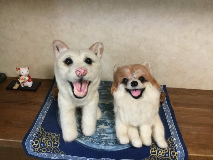 8 104 P-chan さんが造ってくださいました❣️ 白柴の さくら と、 ポメラニアンのこたろう 😊💖💕 #ポメラニアン #白柴 #羊毛フェルト #そっくり人形🧸 20/09/11 18:24