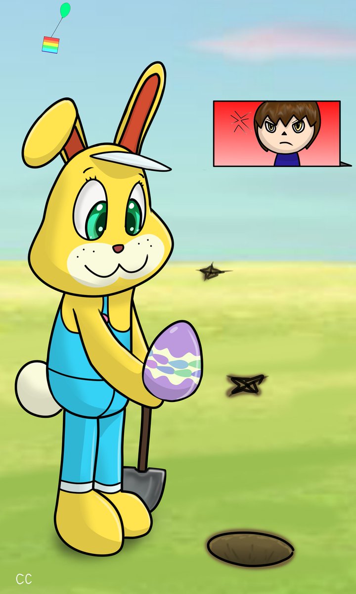 Happy Easter everybody! Or happy bunny day for those on AC... I drew a little something for you guys. #digitalart #Easter #ACNH #BunnyDay #CoffeeCat #medibang #EasterBunny #egghunt #curseyoubunnyforreplacingeverythingwitheastereggs!
