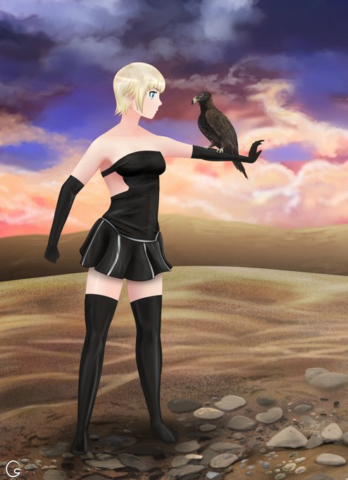 I changed up the cannon idea and gave her a birdy :3 I think it looks better this way #AnimeArt #digitalart #gourai #MediBang #coffeecat