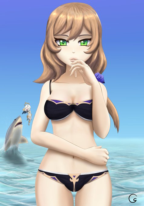 Here's lisa and piamon having a lovely time at the beach ⛱ Gonna make an alt version with a different background and clothing, but for now this is what cha get to see 👀 #genshinimpactfanart #GenshinImapct #ArtistOnTwitter #digitalart #paimon #lisagenshinimpact