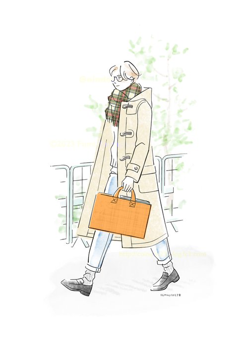 思い出したけど過去に似たようなコーディネートを描いてた。長身の中性的な女性にベージュのロングコートを着せるのが好きなようです #イラスト #coordinate twitter.com/CoindotPindot/…