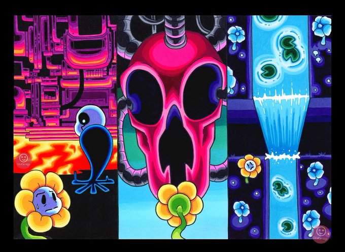 Flowey goes on an adventure 8D I usually hate drawing backgrounds, but these ones were a nice challenge for colouring :) especially the core, never drawing that machine again... #undertale #undertaleFanart #markers