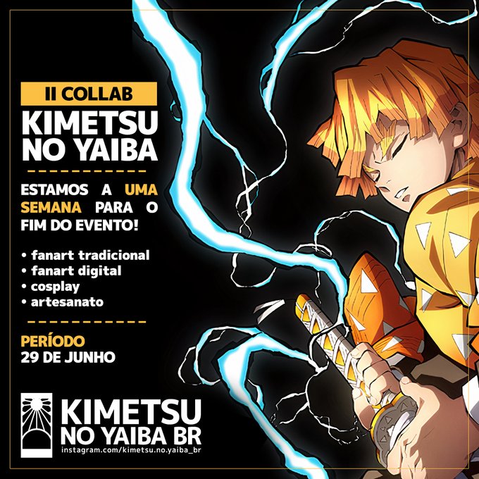 PARTICIPE DA NOSSA II COLLAB #KimetsuNoYaiba ⛩️ SERÁ ACEITO • Fanart (Digital e Tradicional) • Cosplay • Artesanato ⛩️ PERÍODO • 06 de Abril a 29 de Junho #DemonSlayer #鬼滅の刃 #KNY #KimetsuNoYaibaFanart #DemonSlayerFanart #ArtistOnTwitter