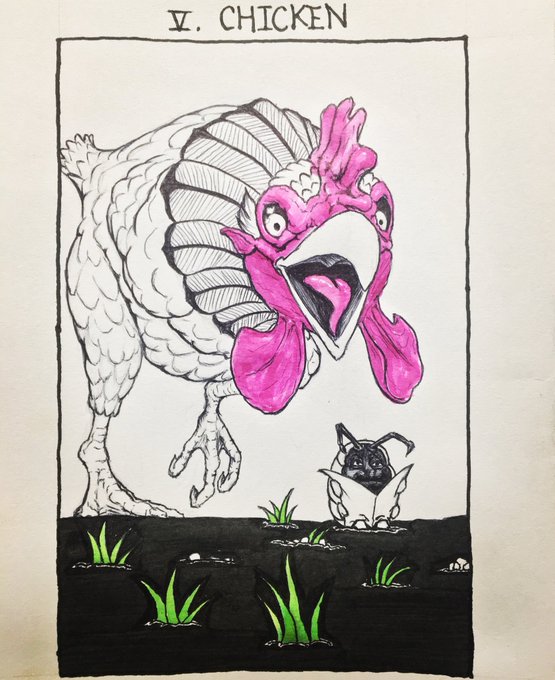 Finally caught up, we’ll see how long this lasts V. Chicken - USD$50 #chicken #inktober #inktober2018 #pillbug #dinosaur #chickensaredinosaurs #caughtup