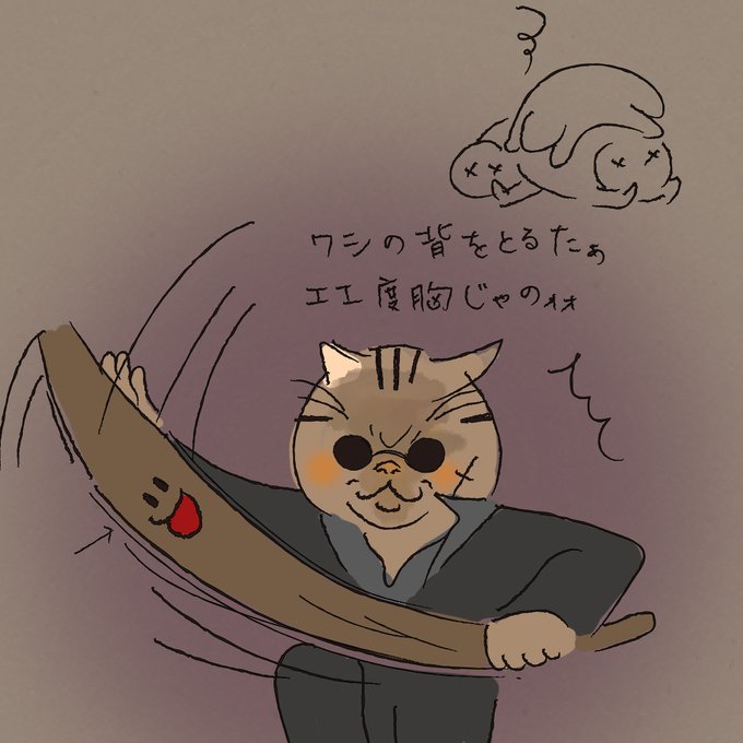久しぶりの漫画の更新😅 バックアタックに異常に強いジョニー(●し屋といえば某さまの設定ですな。。) ホンブシくんの魂が乗り移った最強の魔剣マルサヤ@marusayasan の居合抜き! #自己満足半端ない漫画 #イラスト #夏の相互フォロニャー祭り #猫